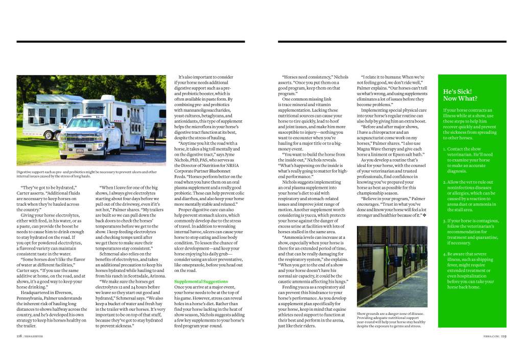 This feature, written for and published in the September 2019 NRHA Reiner, gives readers the tools they need to protect their horses from illness during championship season.
