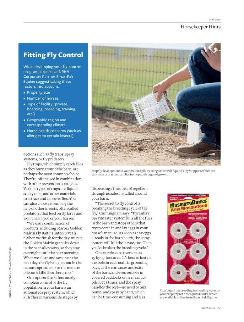 Published in the NRHA Reiner, Banish Pest From the Barn covers fly control tactics proven to keep flies and other insects out of the barn.