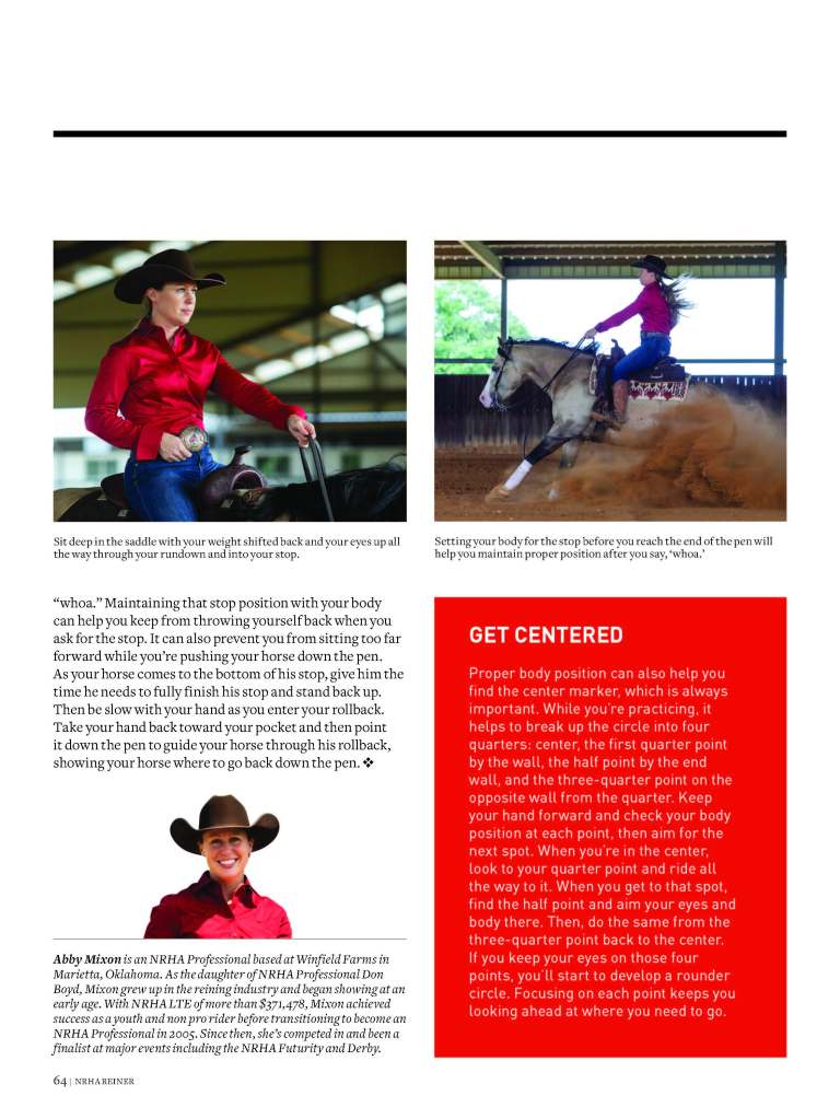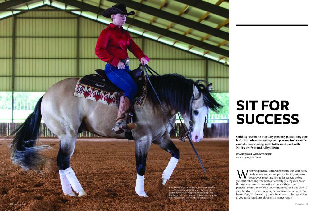 Sit For Success, which was published in the NRHA Reiner magazine, gives readers instructions to improve the seat from 2019 NRHA Professional of the Year Abby Mixon.